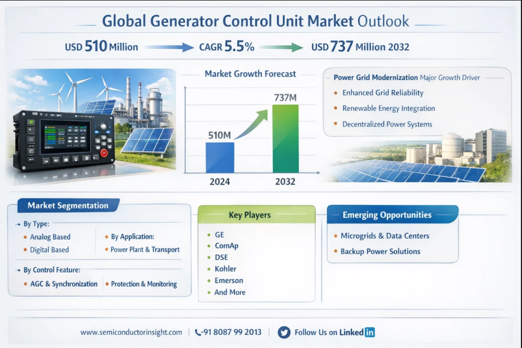 Global Generator Control Unit Market, valued at a robust USD 510 million in 2024, is on a trajectory of significant expansion, projected to reach USD 737 million by 2032. This growth, representing a compound annual growth rate (CAGR) of 5.5%, is detailed in a comprehensive new report published by Semiconductor Insight. The study highlights the mission-critical role these sophisticated electronic systems play in maintaining the stability, efficiency, and safety of power generation assets worldwide.