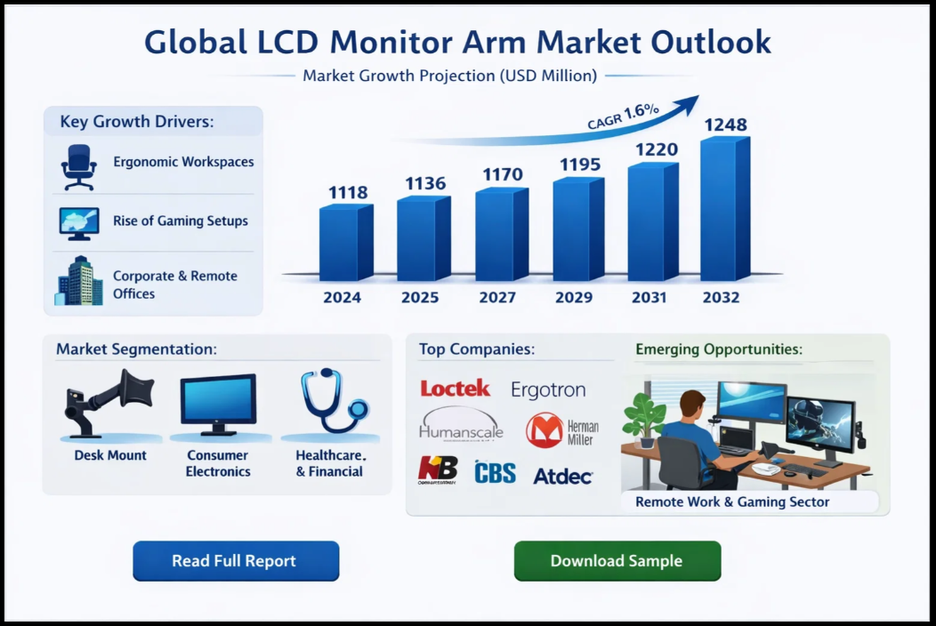 LCD Monitor Arm Market to Reach $1.25B by 2032 Driven by Ergonomic Workspaces and Gaming