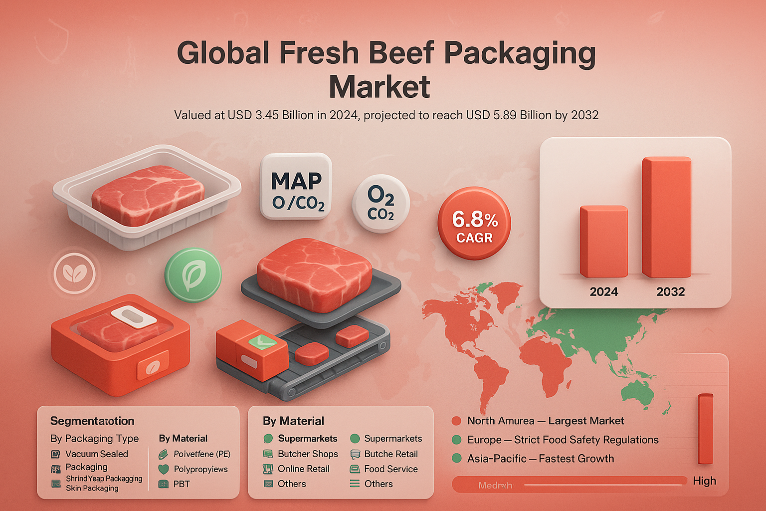 Fresh Beef Packaging: The Critical Role of Specialty Materials in Preserving Quality The global Fresh Beef Packaging market is valued at USD 3.45 billion in 2024 and is projected to reach USD 5.89 billion by 2032, growing at a CAGR of 6.8%. What makes this specialty packaging sector so demanding? Download FREE Sample Report: https://www.24chemicalresearch.com/download-sample/276209/global-fresh-beef-packaging-market